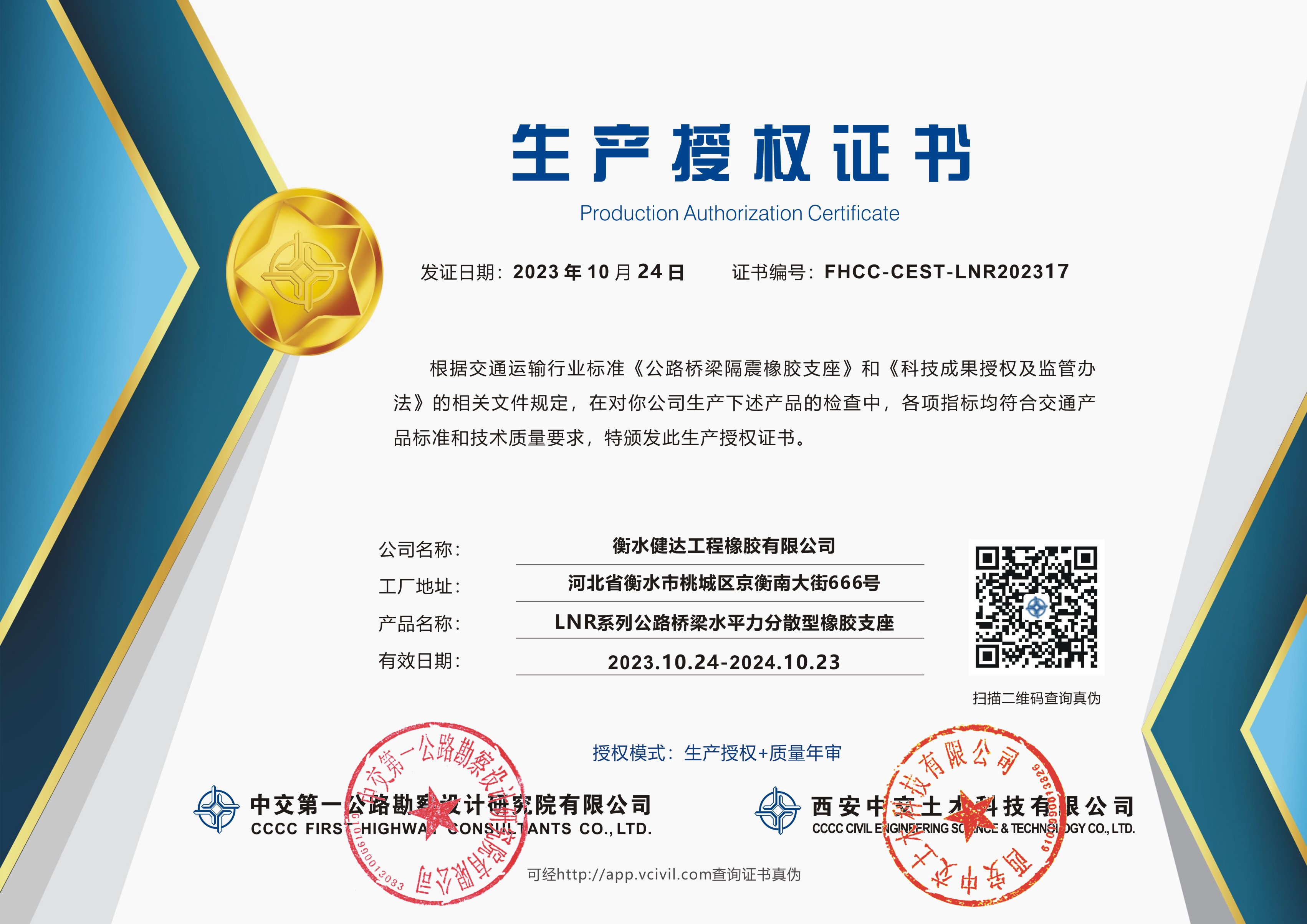 生产授权证书