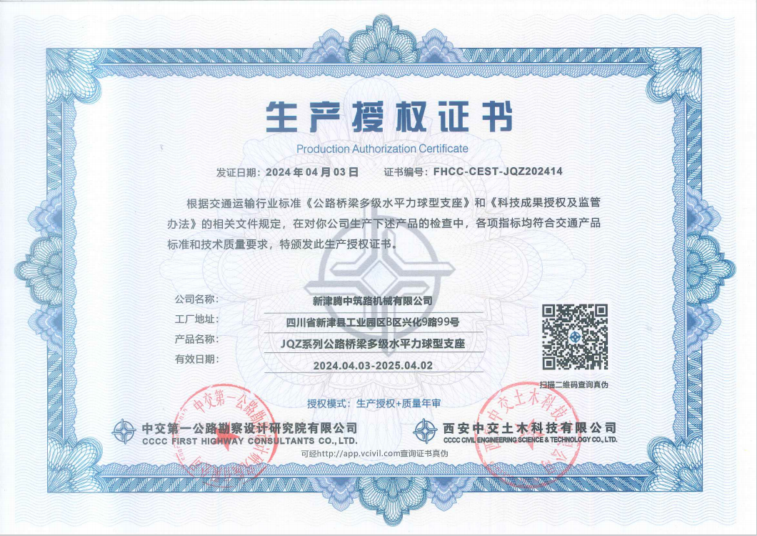公司主要产品:桥梁支座、伸缩装置、预应力锚夹具。1997年取得ISO9001国际标准认证,2004年取得全国工业产品生产许可证,2006年首批通过CRCC铁路支座产品认证,2008年取得ISO14001环境管理体系认证,2012年取得交通产品CCPC认证,第四批建设创新型企业,国家高新技术企业,2016年取得职业健康安全管理体系认证。