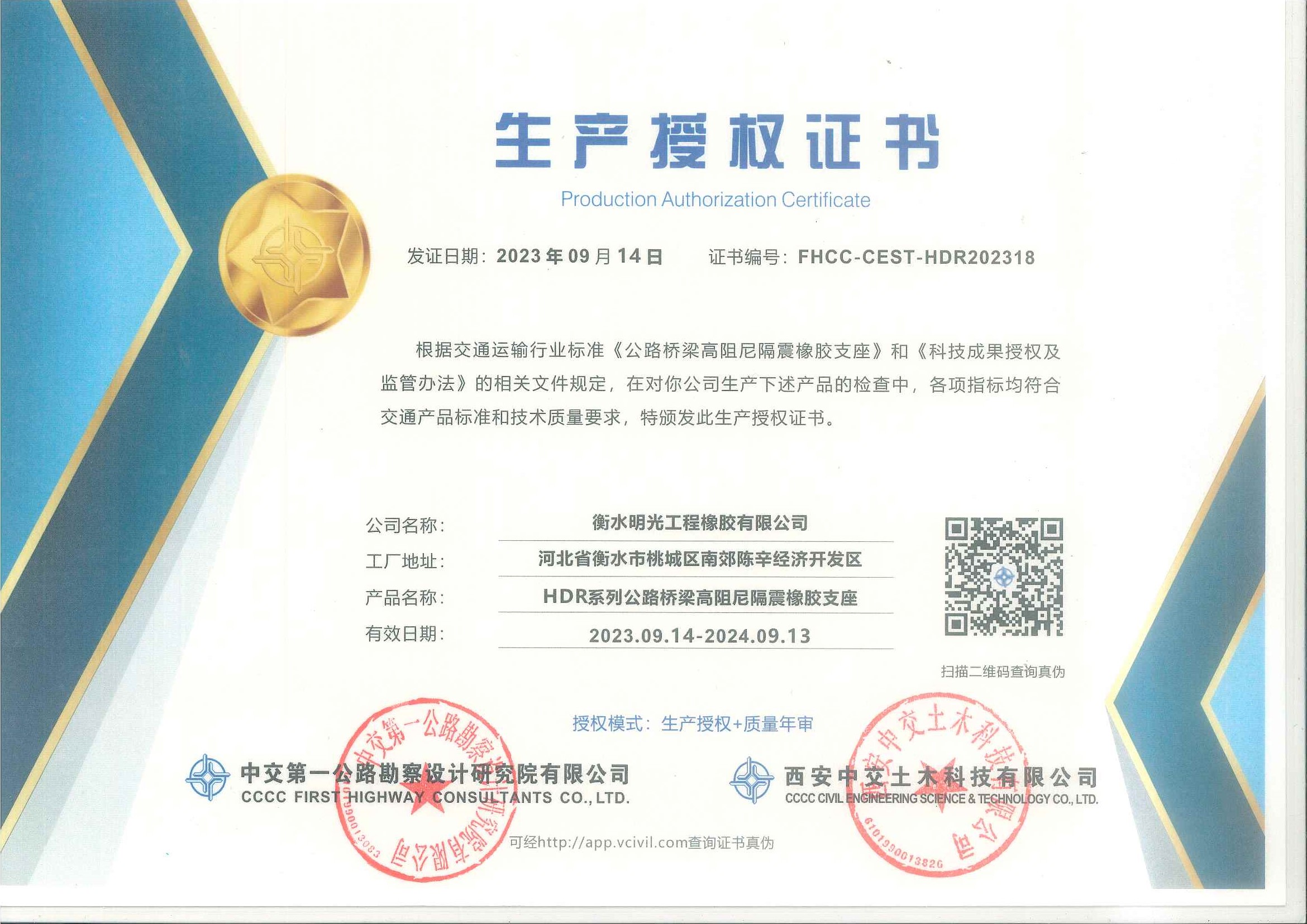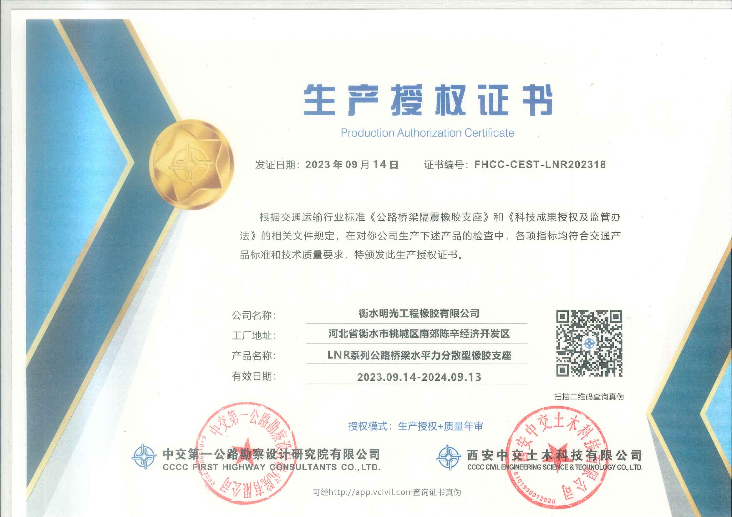 生产授权证书