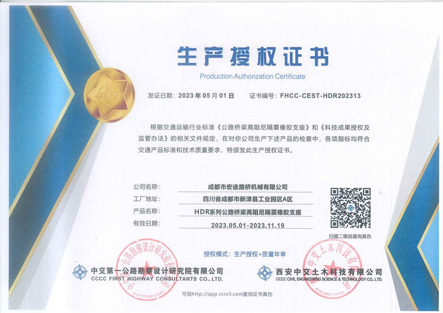 成都市宏途路桥机械有限公司(以下称:宏途路桥)创立于2010年,地址位于四川省成都新津区,注册资金为 1.01亿元,占地2万余平方米,其中建筑面积 15000 平方米。公司是行业国 家级高新技术企业,省级专精特新以及园区科技型重点扶持成长企业。公司长期致力和专注于桥梁及建筑减隔震、数字智能制造领域专用产品的研发、生产、供应、服务,全方位提供各型桥梁智能连接构件及减隔震整体体系解决方案。