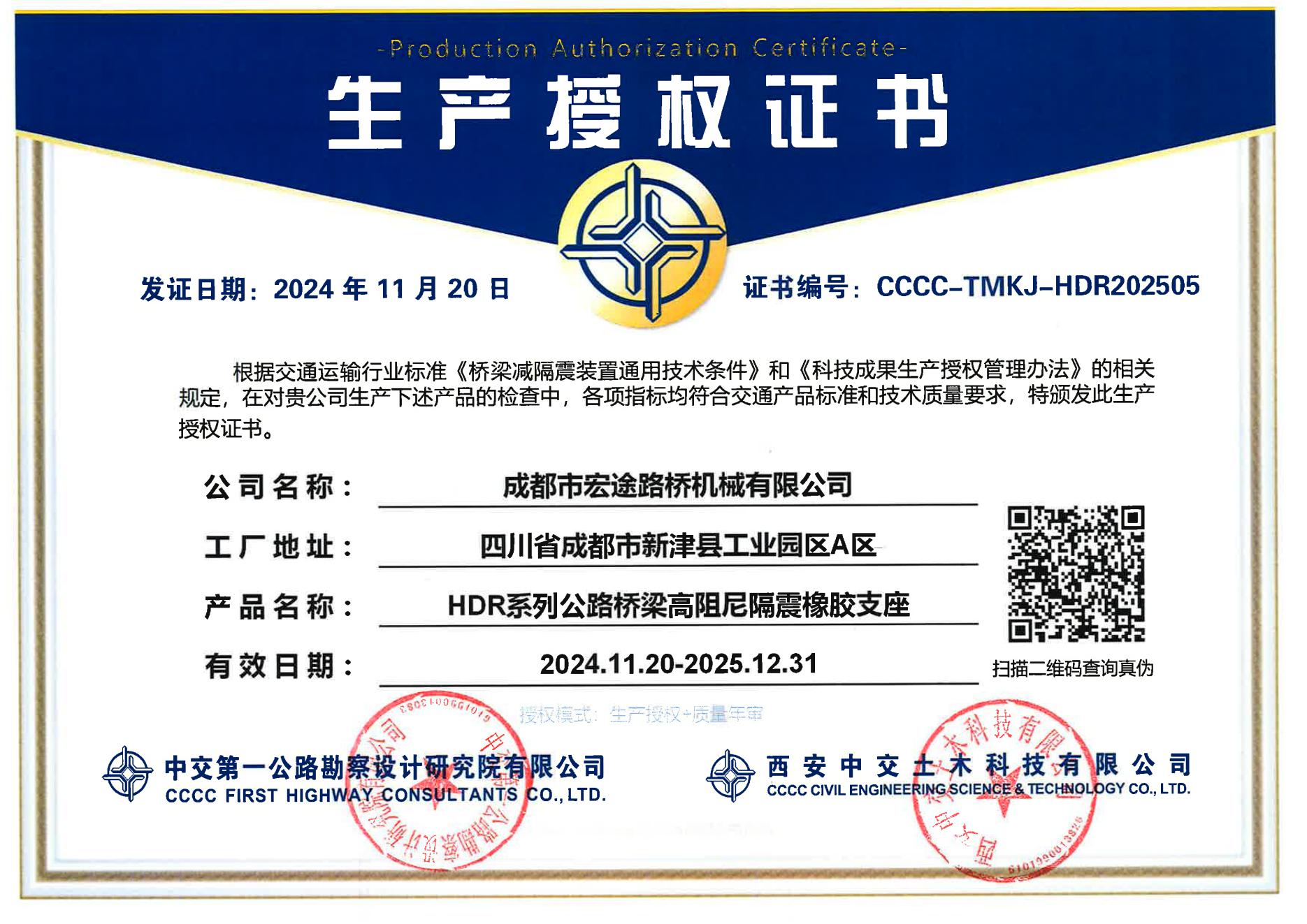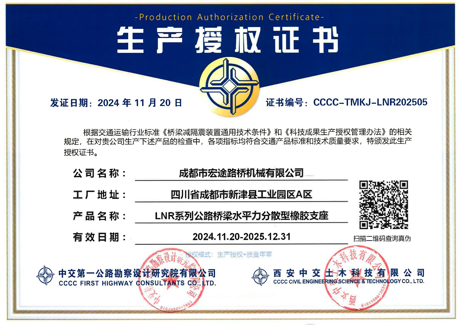 生产授权证书