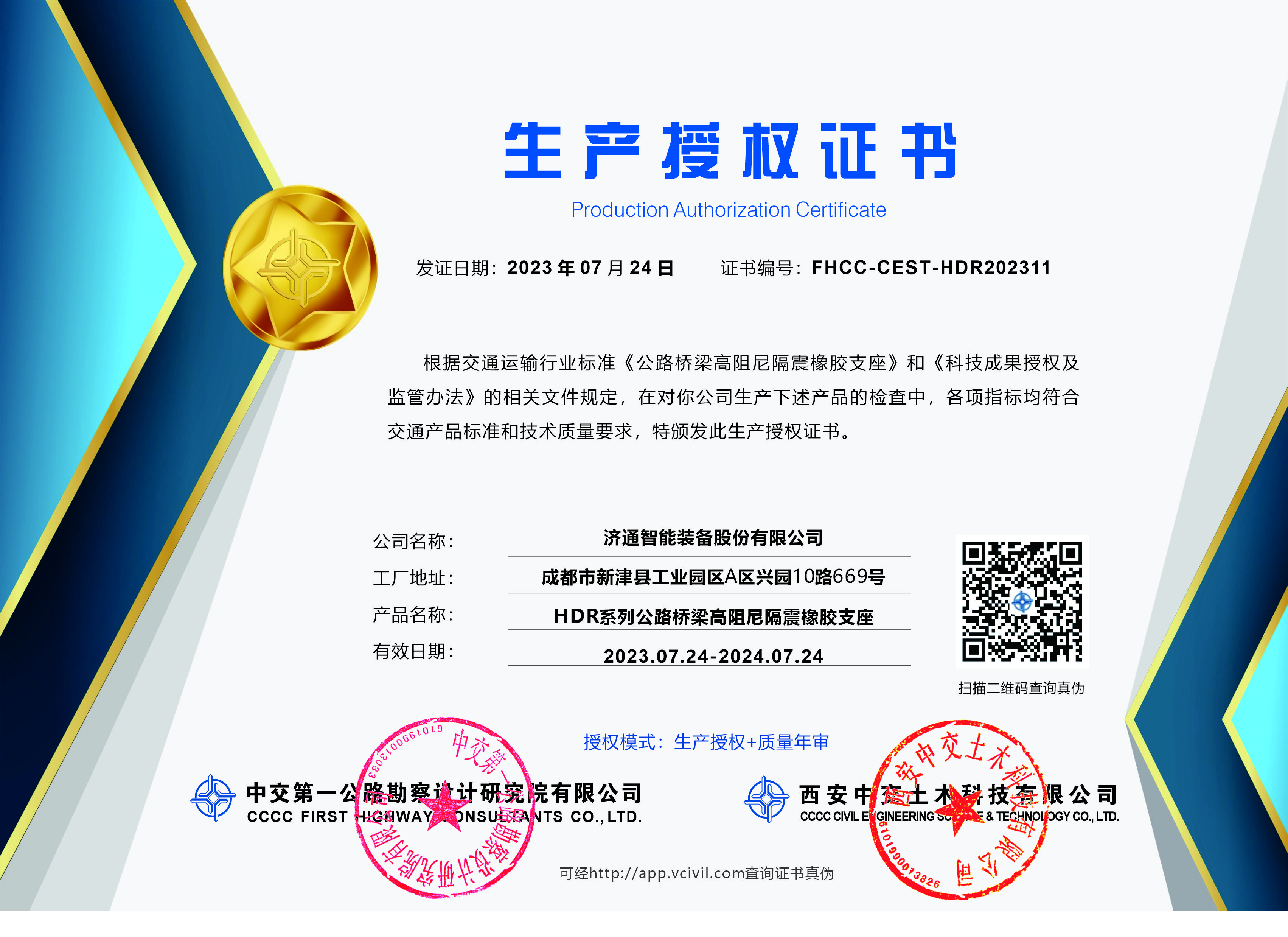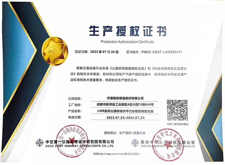 成都济通路桥科技有限公司(简称“济通科技”),是专业从事桥梁及隧道结构减隔震,减降噪,密封防水,预制装配连接件的产品研发,设计,生产,服务于一体的综合性国家高新技术企业。公司注册资金1亿元人民币,生产场地超过15000平方米,主要产品包括公路及轨道交通桥梁与隧道结构支座、伸缩装置、灌浆连接套筒、桥梁检修车、弹性密封垫、止水带/条等,能全方位为客户提供与结构连接件相关的防灾减灾,降噪环保、快速施工整体解决方案。